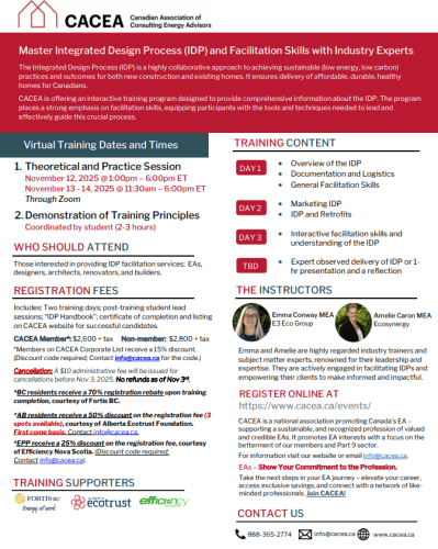 *EPP receive a 25% discount off the registration fee, courtesy of Efficiency Nova Scotia. (Discount code required; Contact info@cacea.ca)