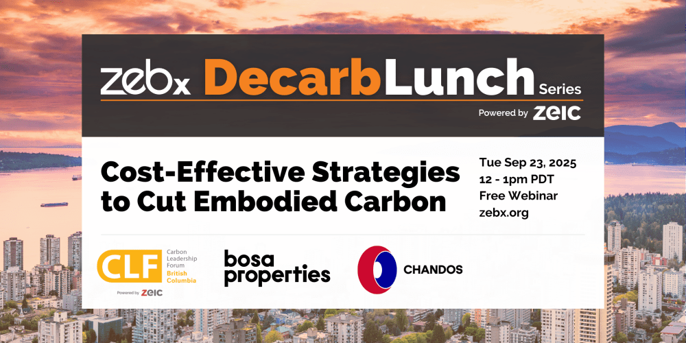 Join ZEBx for our September Decarb Lunch to explore practical, cost-effective strategies for reducing embodied carbon from pre-design through construction.
