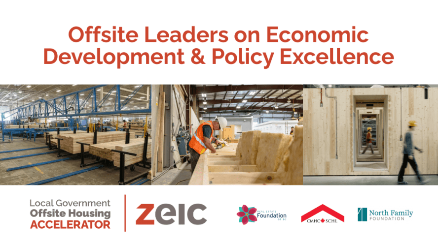 CMHC, North Family Foundation and Real Estate Foundation of BC are sponsoring this webinar. Views expressed are the personal views of our expert interlocutors, not the sponsors or the host, the Zero Emissions Innovation Centre’s Local Government Offsite Accelerator.